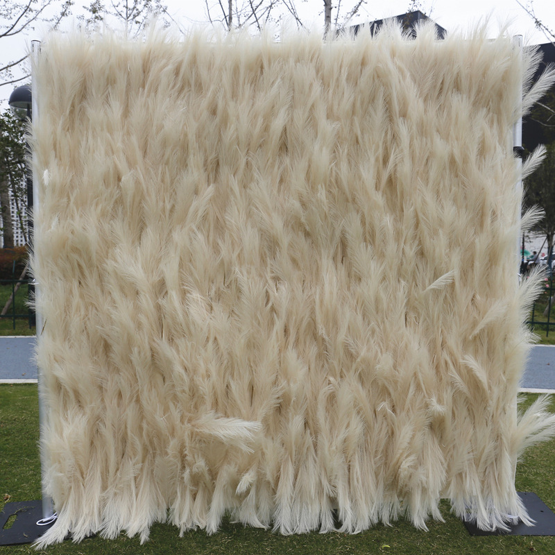 3D Feather Flower Wall Panel Artificial Pampas Floral Wall Handmade Decoration Backdrop